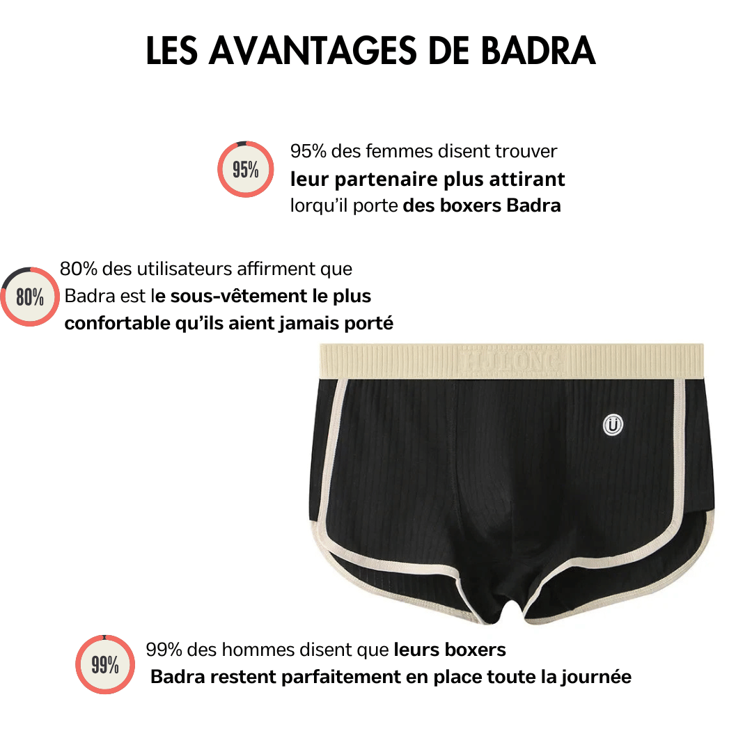 Badra est une entreprise fondée par trois amis : François, Thierry et Michel, dans le but de rendre le quotidien plus agréable. Les sous-vêtements de qualité, tels que les slips, caleçons ou boxers, sont souvent chers, ce qui rend difficile l'accès à un produit à la fois confortable et durable. C’est pourquoi nous avons décidé de créer des produits de qualité, à des prix abordables pour tous.